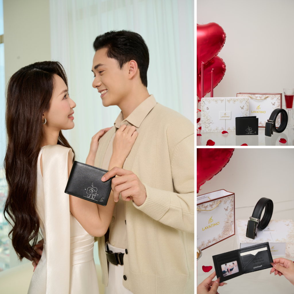 Món quà Valentine để chị em gửi đến người yêu, người chồng luôn nỗ lực vì tương lai, Lavatino mang đến sự kết hợp đẳng cấp giữa ví ngang THOMAS đen và thắt lưng từ dòng da Mastrotto thượng hạng. Điểm nhấn nằm ở thiết kế ngăn chéo phối khóa đầy phá cách, thể hiện tư duy hiện đại và gu thẩm mỹ sắc sảo.